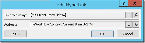 I.e. we need to use Current Item URL from Workflow Context for link address.